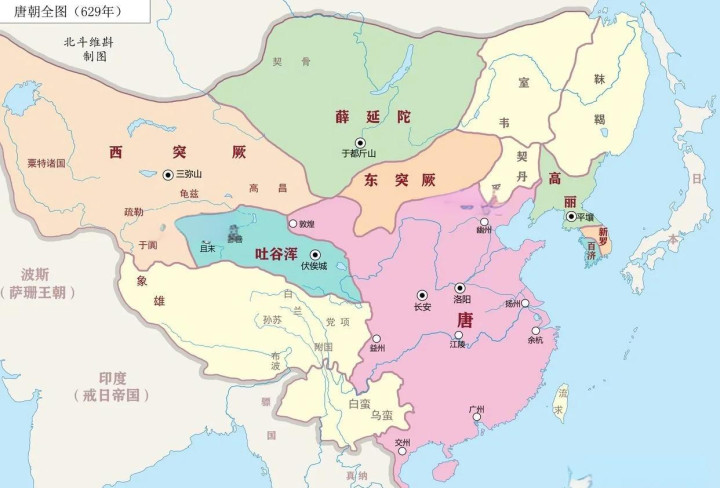 唐朝同样如此 。在唐朝初期,突厥势力强盛,对唐朝构成了巨大威胁 。唐太宗李世民即位后,采取了积极的防御和反击策略 。他一方面加强国内的军事建设,提高军队的战斗力 ;另一方面,密切关注突厥的动向,寻找时机发动反击 。贞观三年(公元 629 年) ,唐太宗任命李靖为行军总管,率领大军进攻东突厥 。李靖不负众望,在定襄之战中,一举击败东突厥 ,俘虏颉利可汗 ,东突厥汗国就此灭亡 。此后,唐朝又陆续击败了西突厥、薛延陀等势力 ,控制了西域地区 ,使丝绸之路得以畅通无阻 。唐朝的疆域东至大海,西至咸海,北至贝加尔湖,南至南海 ,成为了当时世界上最为强大的国家之一 。